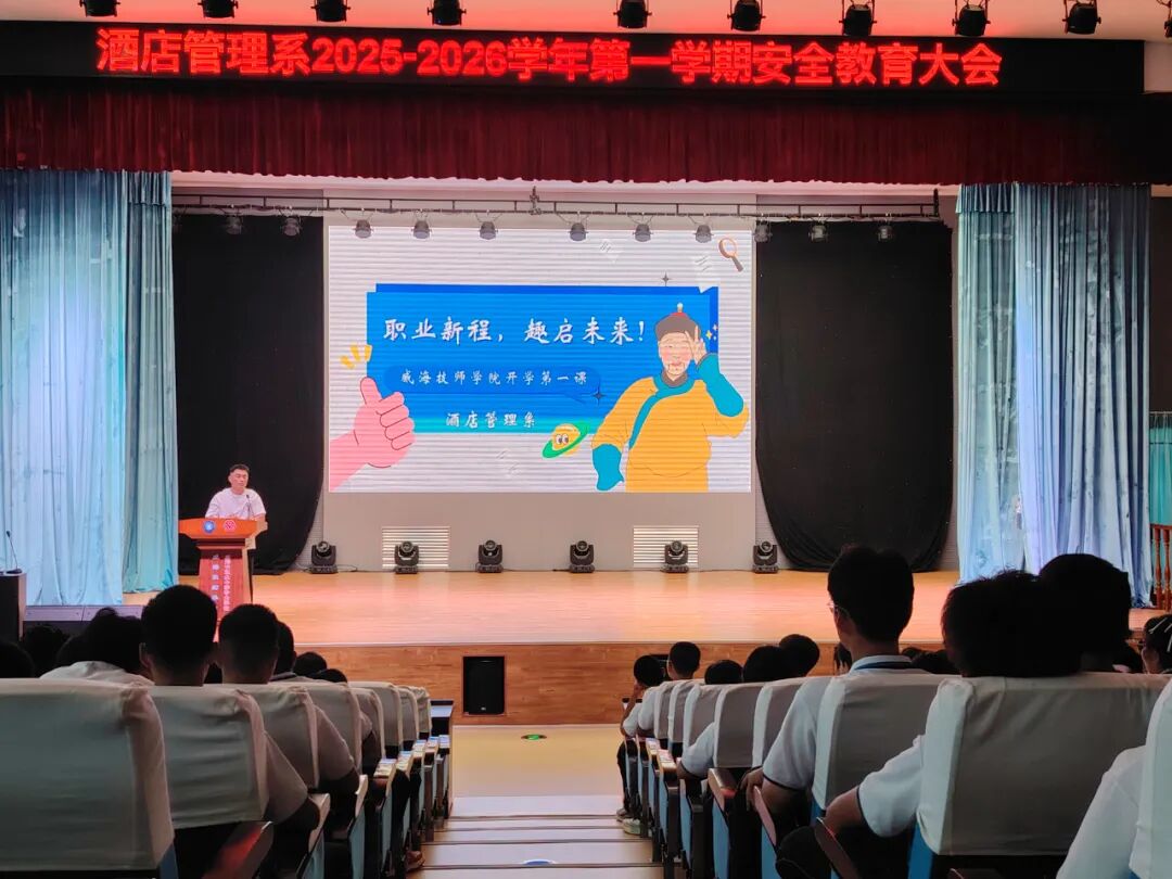 近日,酒店管理系以“职业新程,趣启未来”为主题,举行了2025级新生开学第一课暨安全教育大会。系部全体教师对新同学们的到来表示热烈欢迎,并寄语大家脚踏实地、苦练技能,为未来职业发展打下坚实基础。
