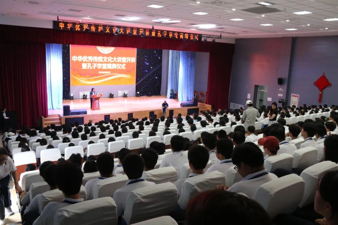 仪式现场,周静与朱文娟共同为学校孔子学堂揭牌,威海明德书院院长李静以《国之重器 未来有我》为题,为师生带来了一场思想深刻、情感充沛的精彩讲座,也正式拉开了中华优秀传统文化大讲堂的序幕。
