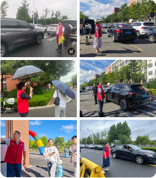本次迎新志愿服务活动历时两天,党员志愿者们始终坚守岗位,以饱满的热情和务实的行动诠释着责任与担当。8月31日一早,身披红马甲的党员志愿者们按照岗位分工,冒着雨提前抵达学校各门岗。道路两旁,他们一边疏导车辆,避免交通拥堵;一边接过沉甸甸的行李,耐心讲解报到路线。9月1日上午温度骤升,党员志愿者们的热情却丝毫未减,在校园门口、主干道与宿舍楼下,他们主动上前引导新生前往各报到点,解答教学楼位置、校园设施等疑问,让新生快速熟悉校园环境。无论是雨天里的撑伞护航,还是晴天里的耐心指引,党员志愿者们始终坚守在服务岗位,成为校园里最靓丽的一道风景线。