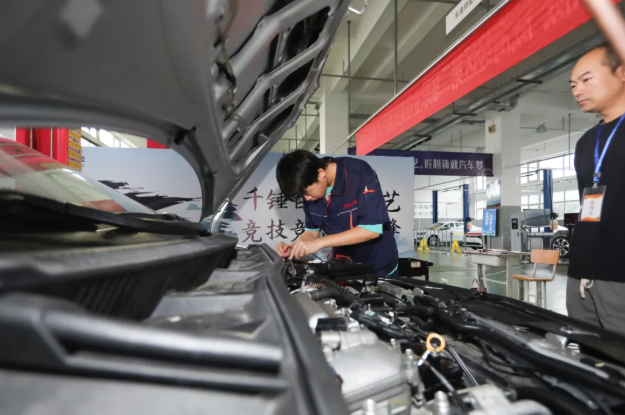竞赛首日,汽车维修、数控车工、电工三大专业的参赛学子齐聚学院各实训赛场,展开了一场“速度与精度”“理论与实践”的巅峰对决。在汽车维修赛场,参赛学生需在规定时间内完成汽车故障诊断、零部件拆装与调试等实操任务,他们熟练运用专业工具,精准排查故障点,每一个动作都展现出扎实的专业功底;数控加工赛场内,机床运转的轰鸣声中,学子们精准操控数控车床,对工件进行金属切削加工,用严谨态度诠释“精益求精”的工匠精神;电工赛场里,选手们有条不紊地进行电路连接、设备调试,在保障安全的前提下,高效完成各项实操任务,展现出扎实的专业技能与应急处理能力。