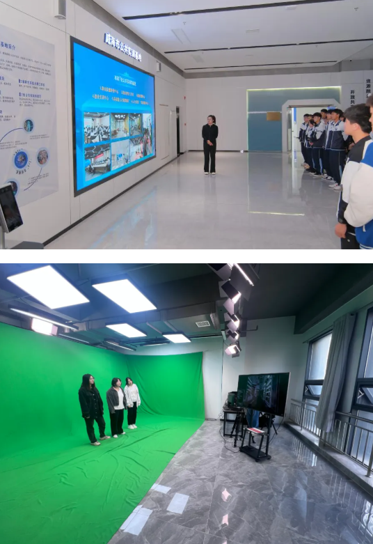 在基地工作人员引导下,师生先参观了高技能人才成果产品展厅。展厅内数字经济领域的创新成果与技术案例,激发了学生钻研专业、投身产业的热情。随后,师生前往威海阳光康艺数字创意科技有限公司,沉浸式体验 XR 虚拟拍摄系统、3D 数字人全生态、XR3D 实时虚拟演播项目。平面设计学生探索虚拟场景与视觉设计融合,为影视后期、虚拟现实设计岗位积累经验。这种 “提前对接企业资源、前置熟悉工作场景” 的模式,让学生在毕业前就精准锁定实习方向,为就业打下坚实基础。