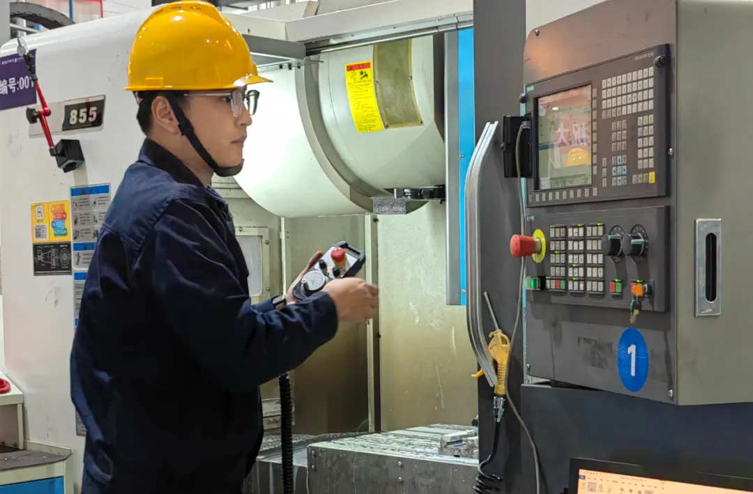 竞赛当日,实操竞赛现场紧张有序。参赛选手们有的紧盯电脑屏幕,用CAD软件绘制模具三维模型;有的在生产管控终端前敲击代码,调试生产流程监控程序;还有的在加工中心旁俯身操作,根据编程指令校准模具零件尺寸……键盘敲击声、设备运行声充斥着每个角落,选手们都沉浸在技术攻坚的专注中,用娴熟的操作与严谨的态度,展现着新时代技能人才的专业风采。